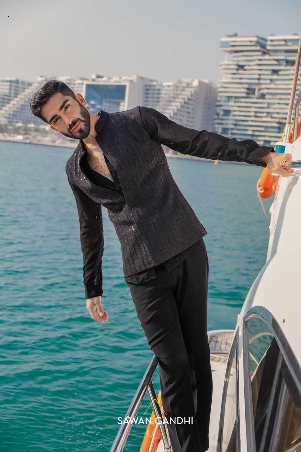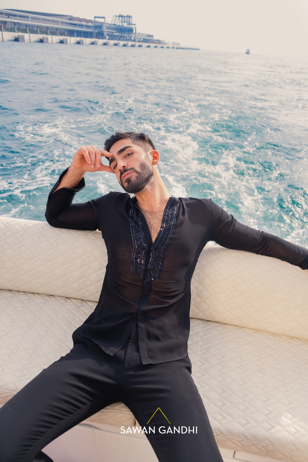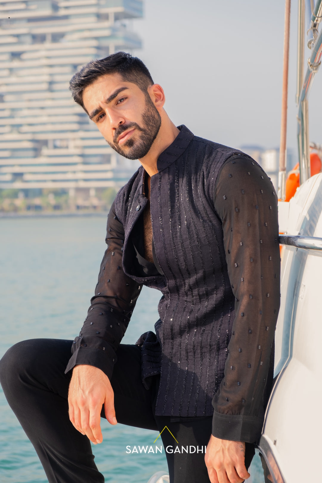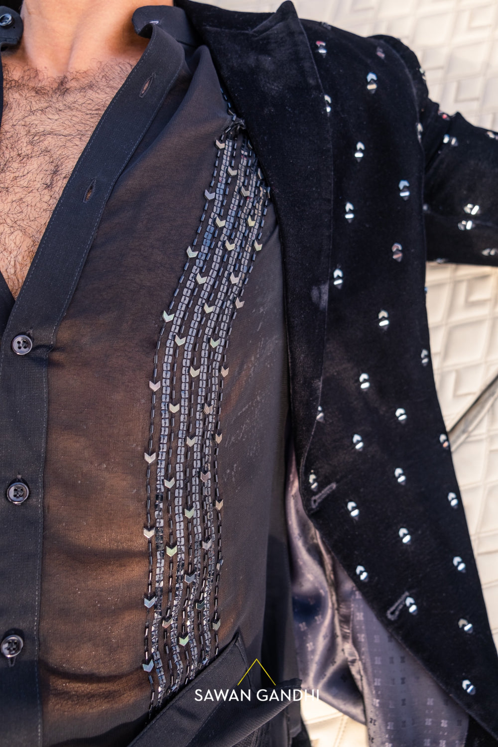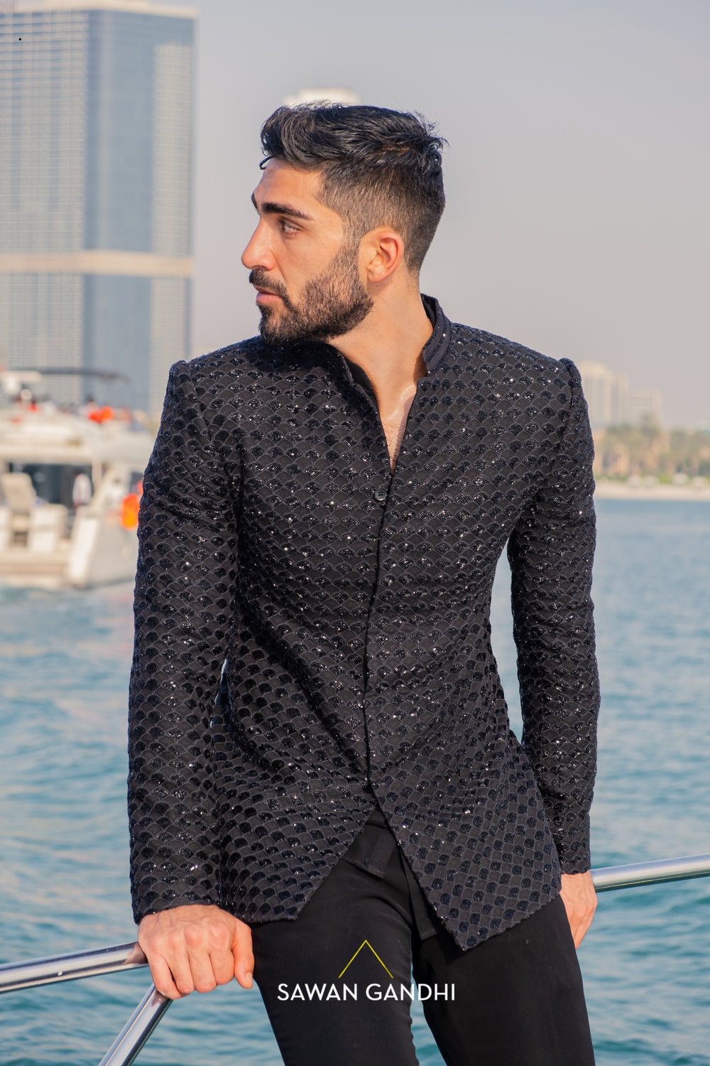 An ode to timeless elegance, featuring sculpted silhouettes, rich textures, and striking embellishments in deep black tones, designed to create powerful, sophisticated statements for evening celebrations and couture occasions.