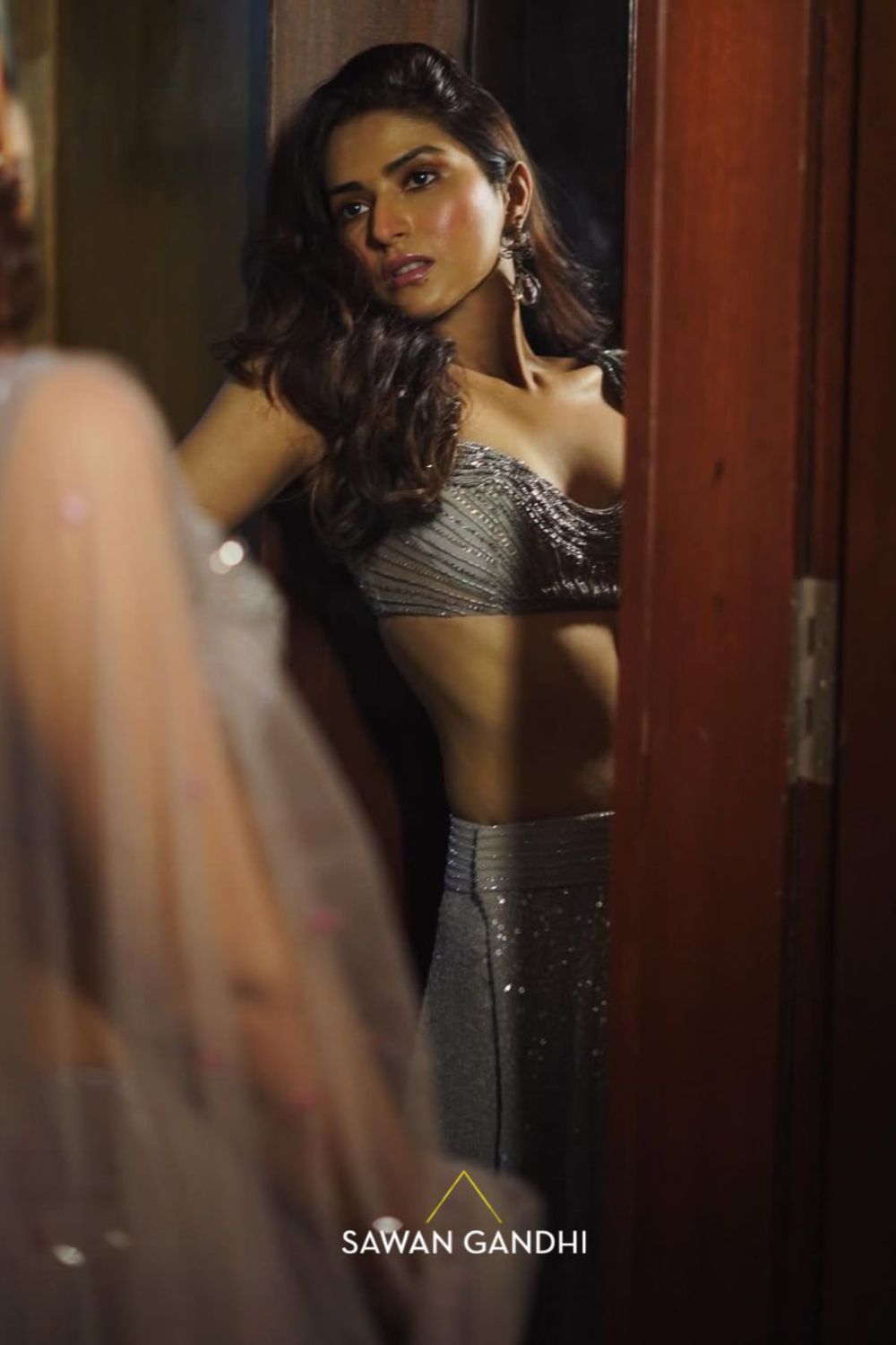 Grey to pink ombre lehenga paired with cutdana work blouse and anet dupatta