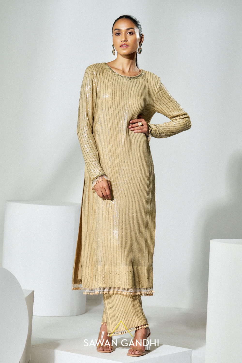 Elegant suit sets crafted with detailed embroidery, fluid silhouettes, and refined textures, perfect for festive gatherings, celebrations, and sophisticated daytime occasions.