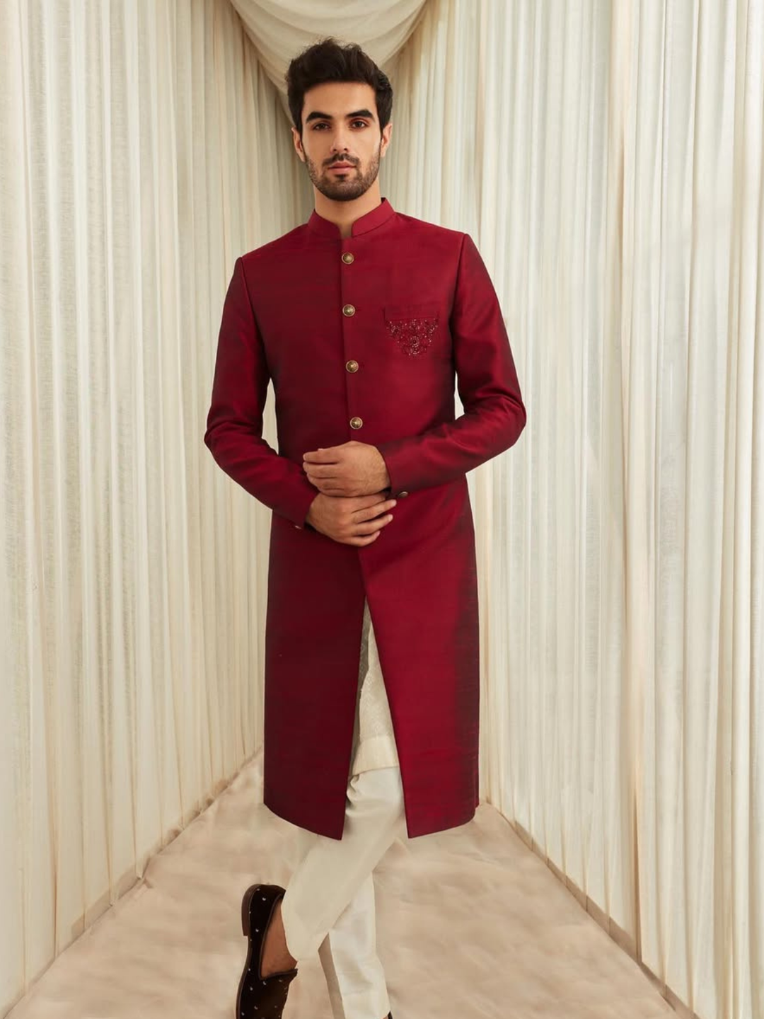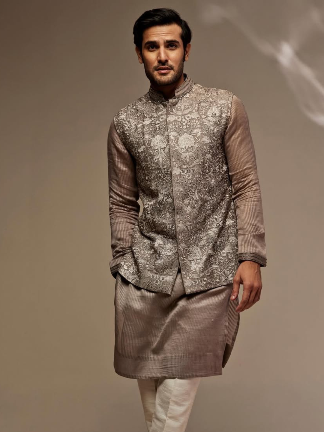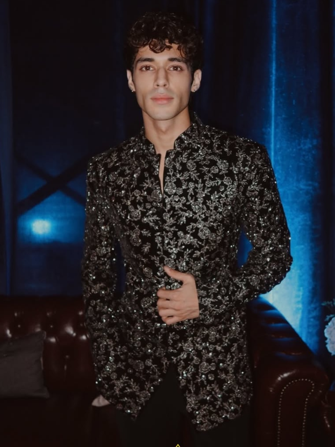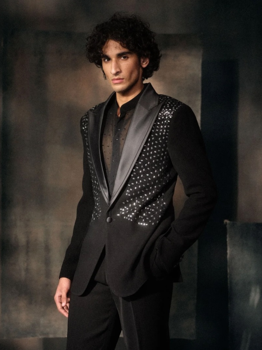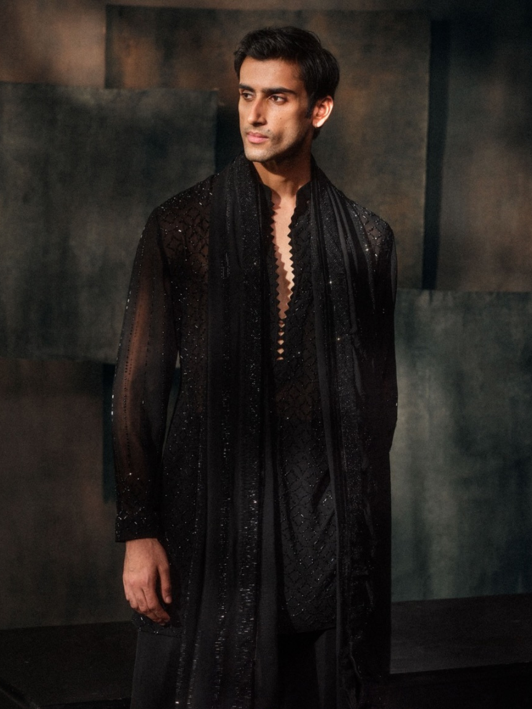This Black Jacket Features An All-Over Chevron Pattern Made With Subtle, Shimmering Cutdana Work.