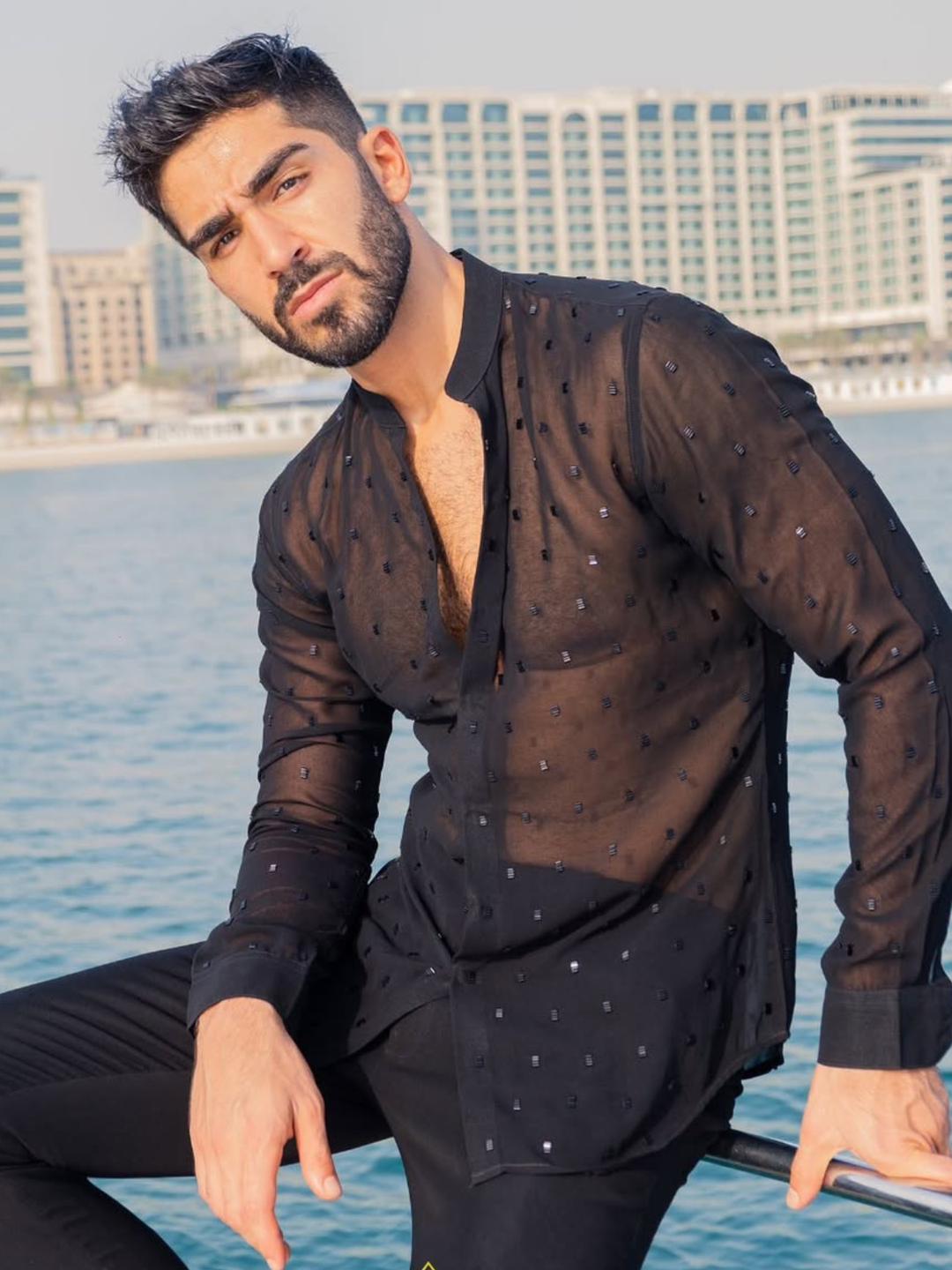 Black Chevron pattern Cutdana Jacket
